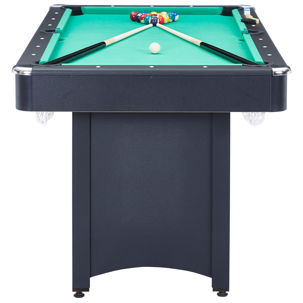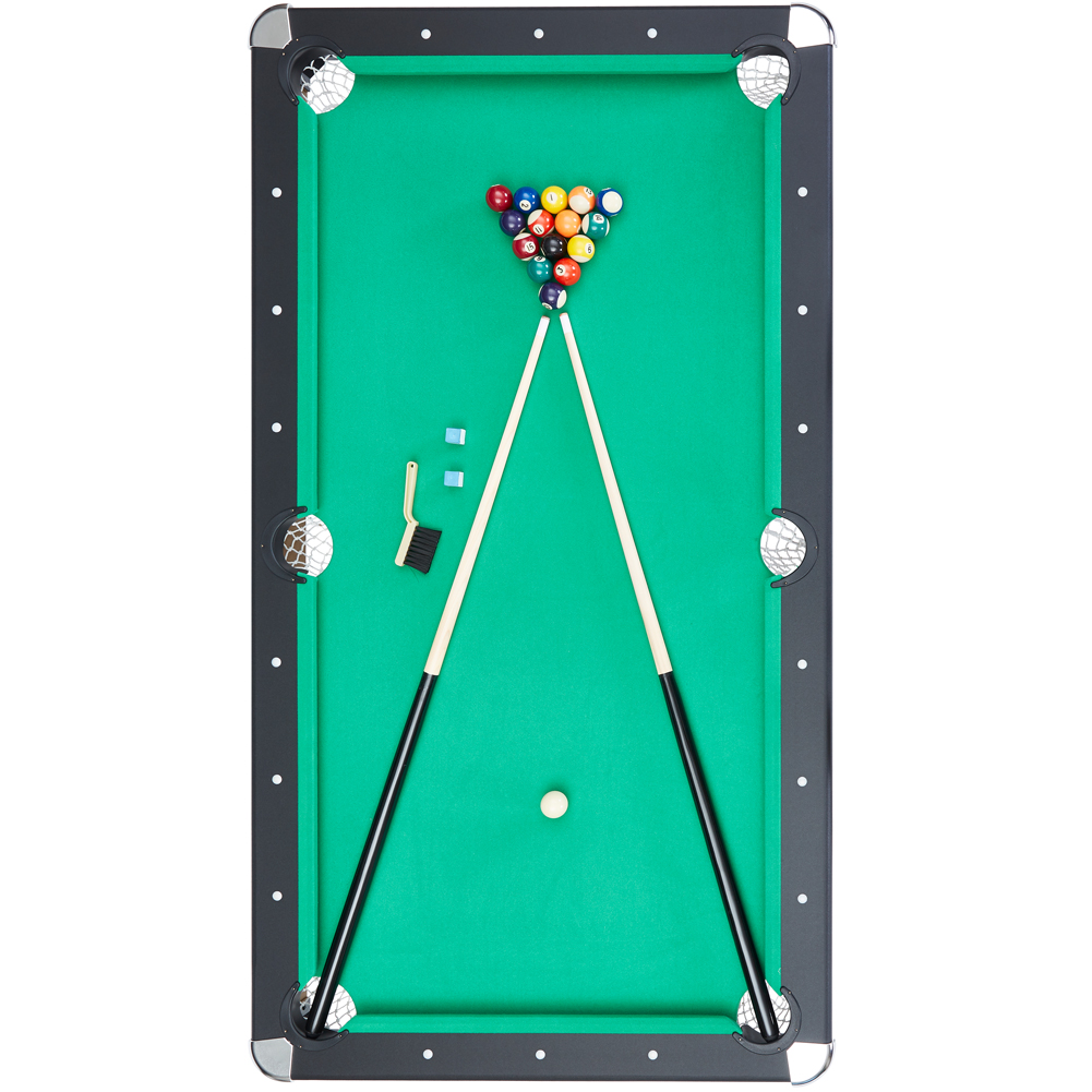 - Zubehör: 1x Satz Billardkugeln,1 weiße Kugel, 2 x Queue, 2 x Kreide, 1x Bürste, 1x Aufbau-Dreieck